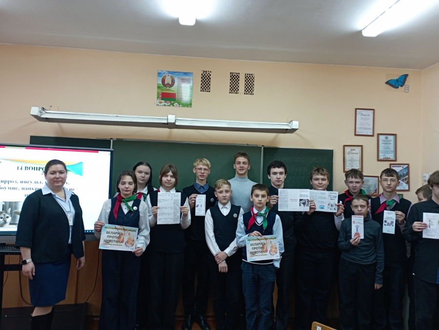 В рамках республиканской акции «Беларусь против никотина» в целях информирования учащихся о вреде никотина и табачных изделий, популяризации здорового образа жизни специалисты Центра, дружественного подросткам «Откровение» детской поликлиники проводят мероприятия в учреждениях образования. Призы и буклеты предоставлены членами ПО ОО «Белорусский союз женщин» ГУЗ «Полоцкая ЦГБ».